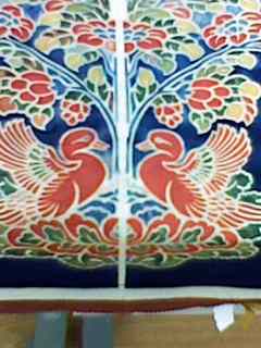 正倉院の 花樹双鳥文 夾纈(きょうけち)の再現。